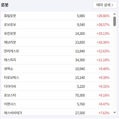 오늘 대부분의 섹터가 불기둥을 이루는 가운데 로봇주들의 진격이 엄청납니다.