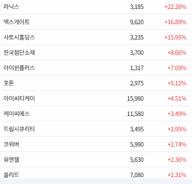 오늘 현재 양자암호통신 섹터가 1위를 차지하고 있습니다.