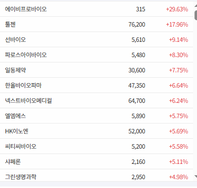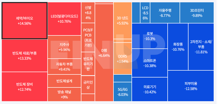 오늘 기준으로 강한 섹터를 알아보겠습니다.