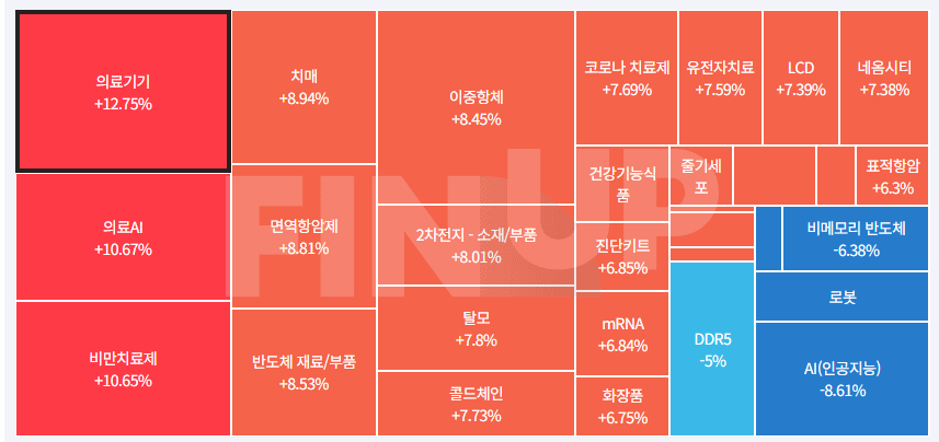 오늘 가장 강한 섹터는 어디인지 찾아 볼까요?