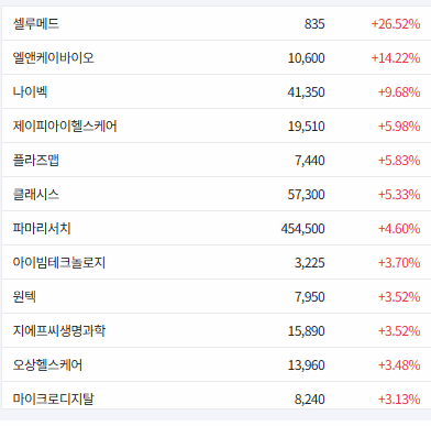 주가 상승률 순입니다.