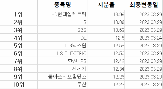순위 종목 지분율