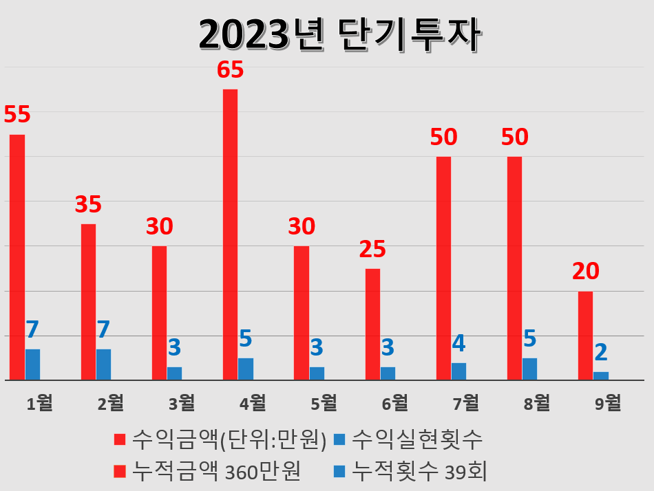2023년 단기매매 수익은 꾸준히 이어가고 있습니다. 벌써 4분기에 접어들어서 일 년이 금방 가는 느낌이 듭니다.